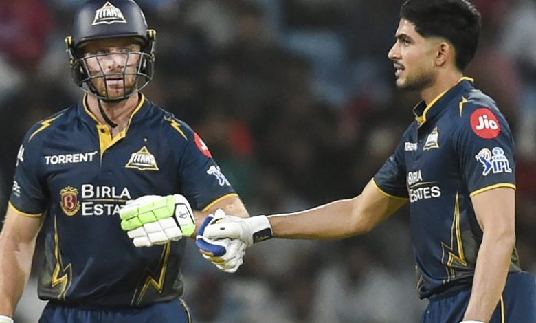 सुदर्शन 14 गेंदों में 15 रन बनाकर पवेलियन लौटे, जिसके बाद जोस बटलर ने गिल के साथ दूसरे विकेट के लिए 58 गेंदों में 84 रन की साझेदारी की। गिल 40 गेंदों में 1 छक्के और 6 चौकों की मदद से 56 रन बनाकर आउट हुए, जबकि बटलर ने 37 गेंदों में 11 चौकों के साथ 60 रन जुटाए।