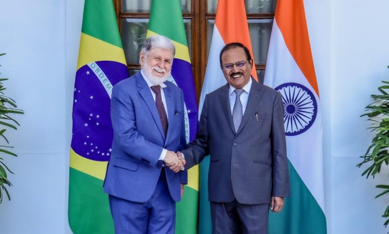 नई दिल्ली (आईएएनएस) । भारत के राष्ट्रीय सुरक्षा सलाहकार (एनएसए) अजीत डोवाल ने नई दिल्ली में छठे भारत-ब्राजील रणनीतिक संवाद के लिए राष्ट्रपति लुईज इनासियो लूला दा सिल्वा के विशेष सलाहकार और राजदूत सेल्सो लुइस नून्स अमोरिम से मुलाकात की। दोनों देश अमेरिकी टैरिफ के प्रभावों को कम करने के लिए नए व्यापारिक रास्ते तलाश रहे हैं।