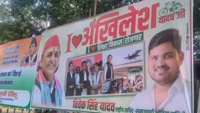 UP में पोस्टर वार : I Love Yogi के जवाब में सपा कार्यालय के बाहर लगा आई लव अखिलेश यादव का पोस्टर