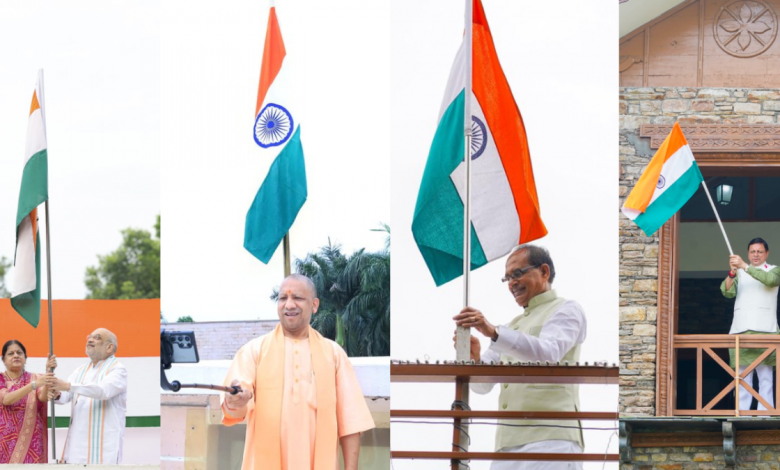 नई दिल्ली। केन्द्रीय गृह एवं सहकारिता मंत्री अमित शाह, कृषि एवं किसान कल्याण मंत्री शिवराज सिंह चौहान, उत्तर प्रदेश के मुख्यमंत्री योगी आदित्यनाथ, उत्तराखंड के मुख्यमंत्री पुष्कर सिंह धामी और गुजरात के मुख्यमंत्री भूपेंद्र पटेल सहित विभिन्न नेताओं ने बुधवार ‘हर घर तिरंगा’ अभियान के तहत अपने आवास पर तिरंगा फहराया।