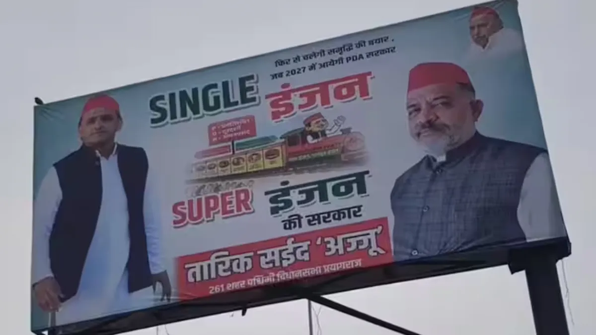 प्रयागराजः उत्तर प्रदेश में 2027 में होने वाले विधानसभा चुनाव में टिकट पाने के लिए स्थानीय नेता पोस्टर और होर्डिंग के जरिये वरिष्ठ नेताओं के सामने नंबर बढ़ाने में लग गये हैं। इसी कड़ी में संगम नगरी प्रयागराज में आज समाजवादी पार्टी के नेता तारिक सईद अज्जू ने कानपुर हाईवे पर इलाहाबाद हाईकोर्ट के नजदीक एक होर्डिंग लगवाई है। इस होर्डिंग में भाजपा की डबल इंजन सरकार को चुनौती देते हुए अखिलेश यादव को सिंगल इंजन और सुपर इंजन की सरकार बताया गया है।